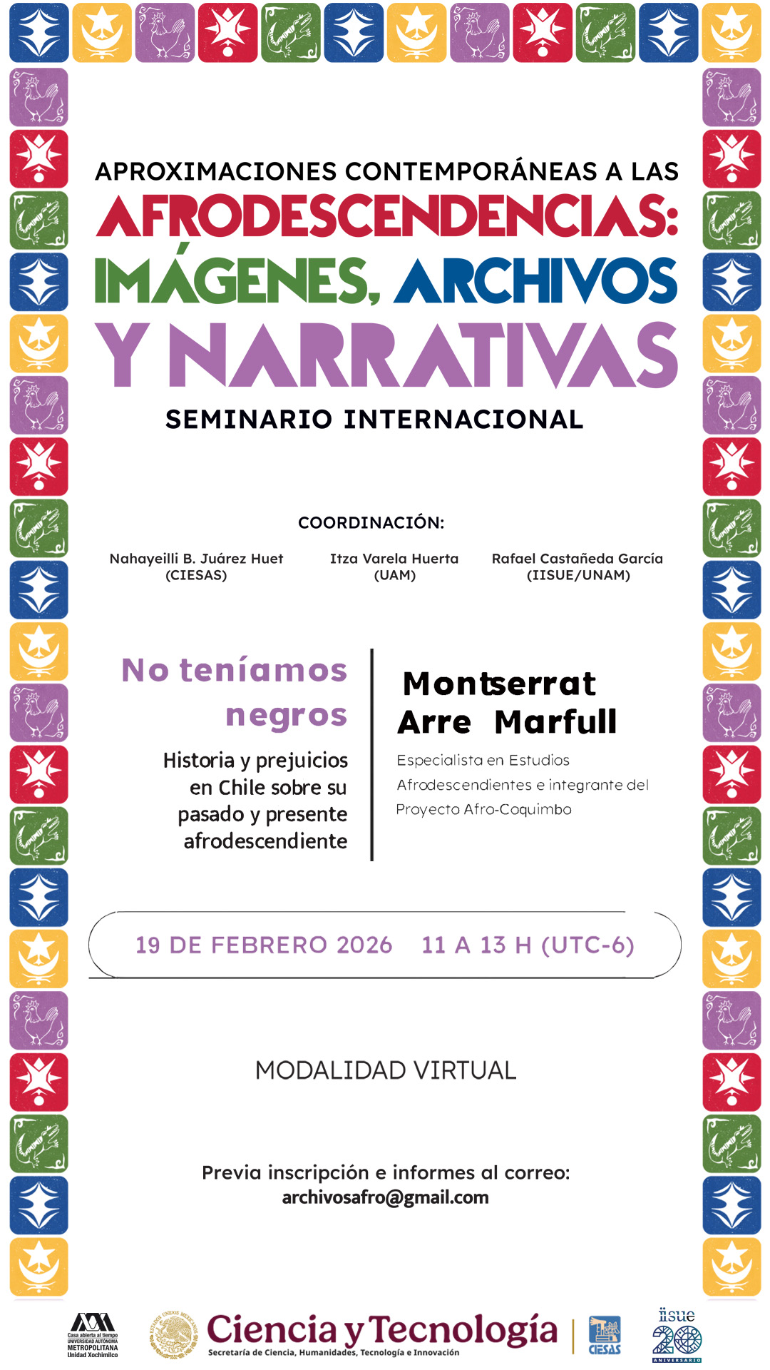 El Seminario Aproximaciones Contemporáneas a las Afrodescendencias invita a su próxima sesión, la cual contará con la participación de Montserrat Arre Marfull, autora de No teníamos Negros, libro que que aborda cómo racismo y las políticas de blanqueamiento en Chile.