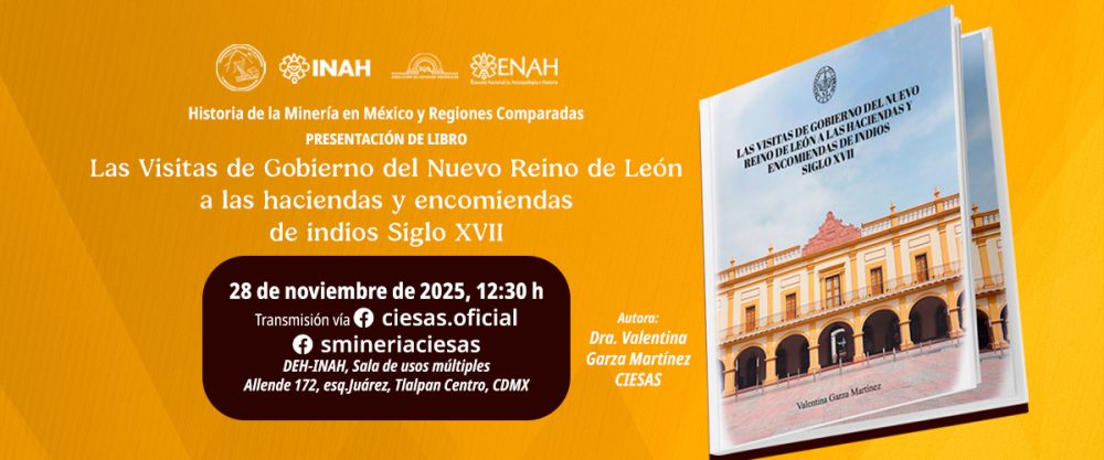 El Seminario Historia de la Minería en México y Regiones Comparadas invita a la presentación editorial de Las Visitas de Gobierno del Nuevo Reino de León a las haciendas y encomiendas de indios Siglo XVII, de la autora Valentina Garza Martínez