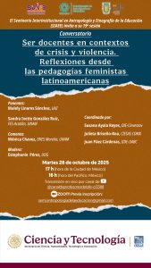 El Seminario Interinstitucional en Antropología y Etnografía de la Educación (SIAEE) invita a la sesión Ser docentes en contextos de crisis y violencia. Reflexiones desde las pedagogías feministas latinoamericanas, a cargo de Malely Linares Sánchez (UAZ) y Sandra Ivette González Ruiz (FES Acatlán, UNAM).
