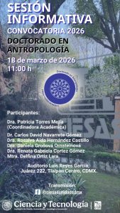 La Subdirección de Docencia del CIESAS invita a los aspirantes a ingresar al Doctorado en Antropología en la Ciudad de México, a ver la Sesión Informativa de la convocatoria, en la que podrán conocer a profundidad el Plan de Estudios y los requisitos para poder ingresar al posgrado.