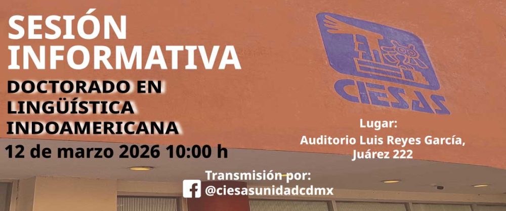 Sesión Informativa de la Doctorado en Lingüística Indoamericana marzo 12 @ 10:00 AM Auditorio Luis Reyes García Juárez 222, Tlalpan, Tlalpan, CDMX, Mexico Modalidad híbrida. CIESAS Golfo | Facebook Live Gratuito