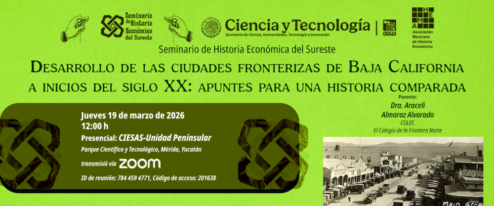 Desarrollo de las ciudades fronterizas de Baja California marzo 19 @ 12:00 PM - 2:00 PM CIESAS Peninsular Km 5.5 Carretera Sierra Papacal – Chuburná, Merida, Yucatán, México Modalidad híbrida. CIESAS Peninsular, Mérida, Yucatán | Zoom Gratuito